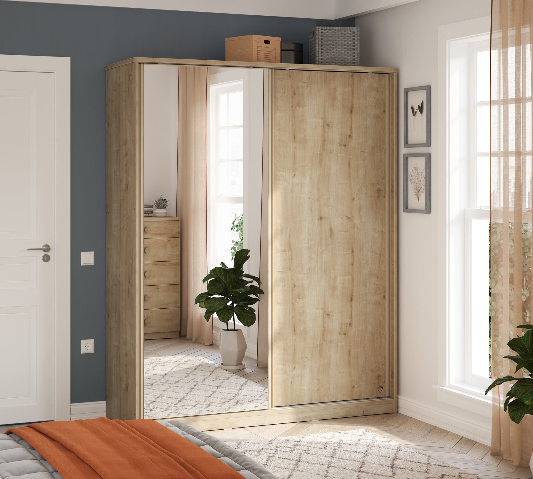 Distinguished by its modern design and functional structure , the Mocha Sliding Wardrobe brings both style and practicality to your room. The full-length mirror on the left door adds a sense of spaciousness to your room and facilitates daily use. The special laser-engraved Çilek logo on the right door gives the wardrobe an elegant and unique character.