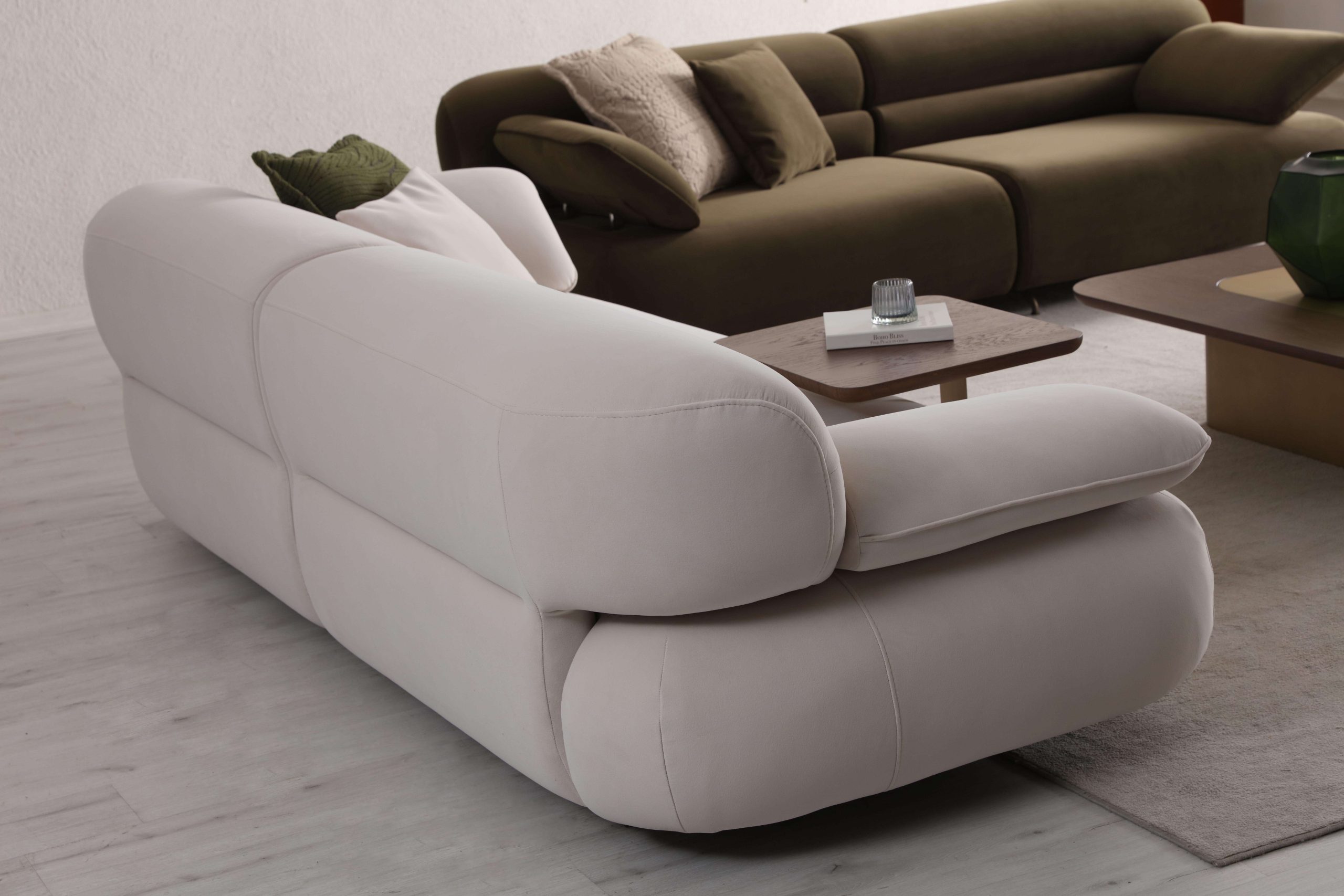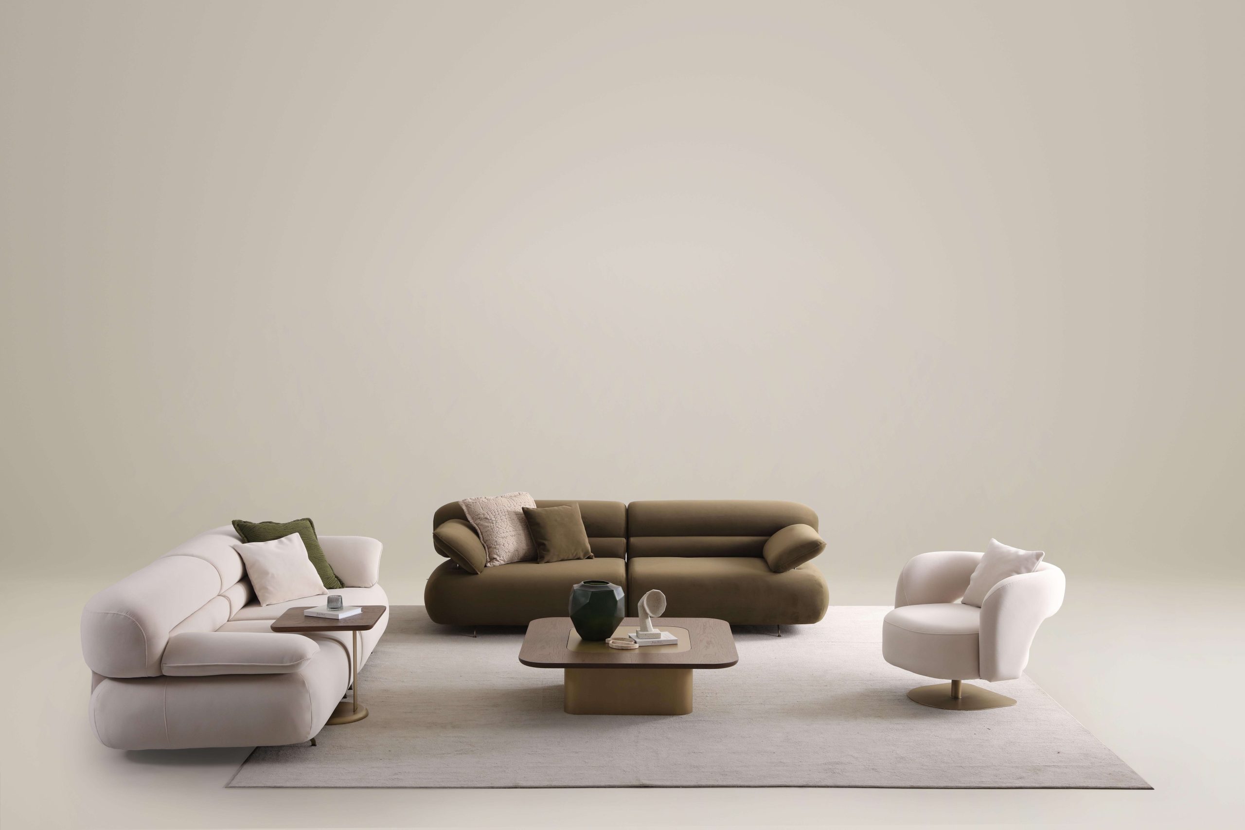 The compact and well-proportioned silhouette of both the seats and the small sofa, opens up to a new way of using the dining space.