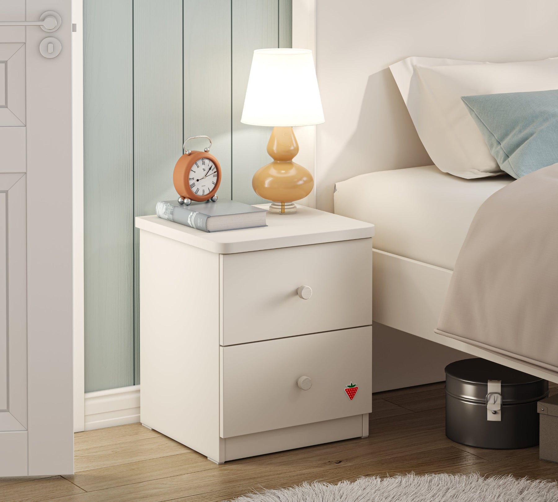 The Varia Cream Nightstand , with its minimalist lines , offers both functionality and aesthetics in your bedroom. Its two drawers help you keep your belongings organized. The drawers close silently and softly for ease of use. Adding a modern touch to your room with its Vario Mink color, the Varia Cream Nightstand is both a stylish addition and a helpful tool to simplify your daily life.
