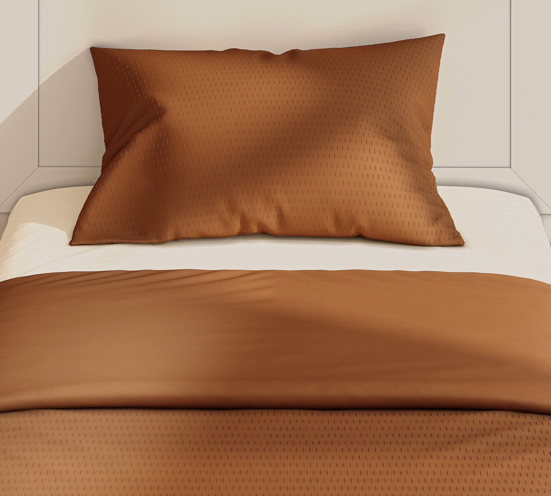 Reflecting the unique design philosophy of the Lapel collection, this special bedspread is designed to add warmth and style to youth rooms. Distinguished by its terracotta-toned texture and soft feel , the Lapel Bedspread brings a warm and natural atmosphere to any decor. The textured patterns on its surface offer a modern look, while creating a harmonious whole with the included pillowcase.