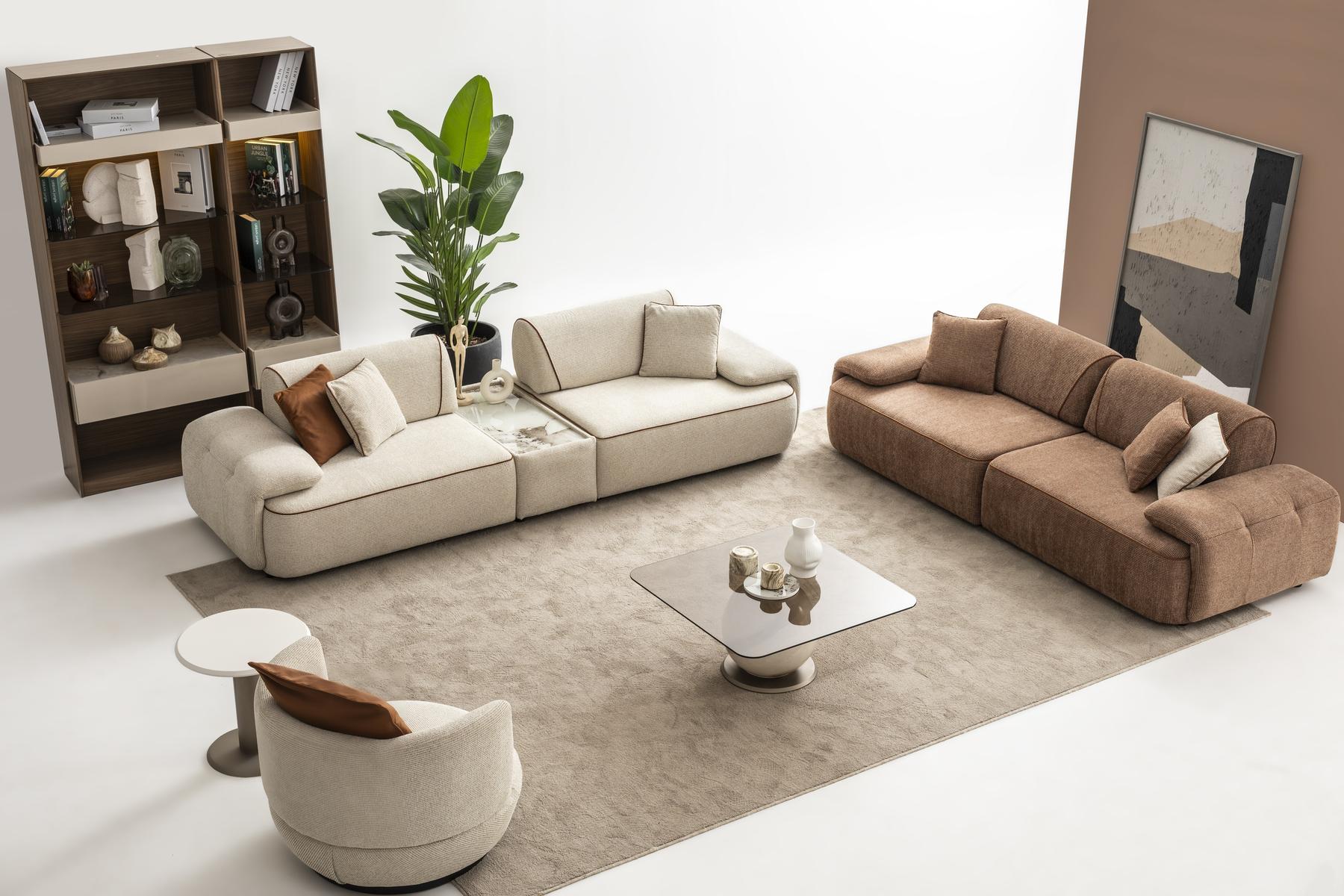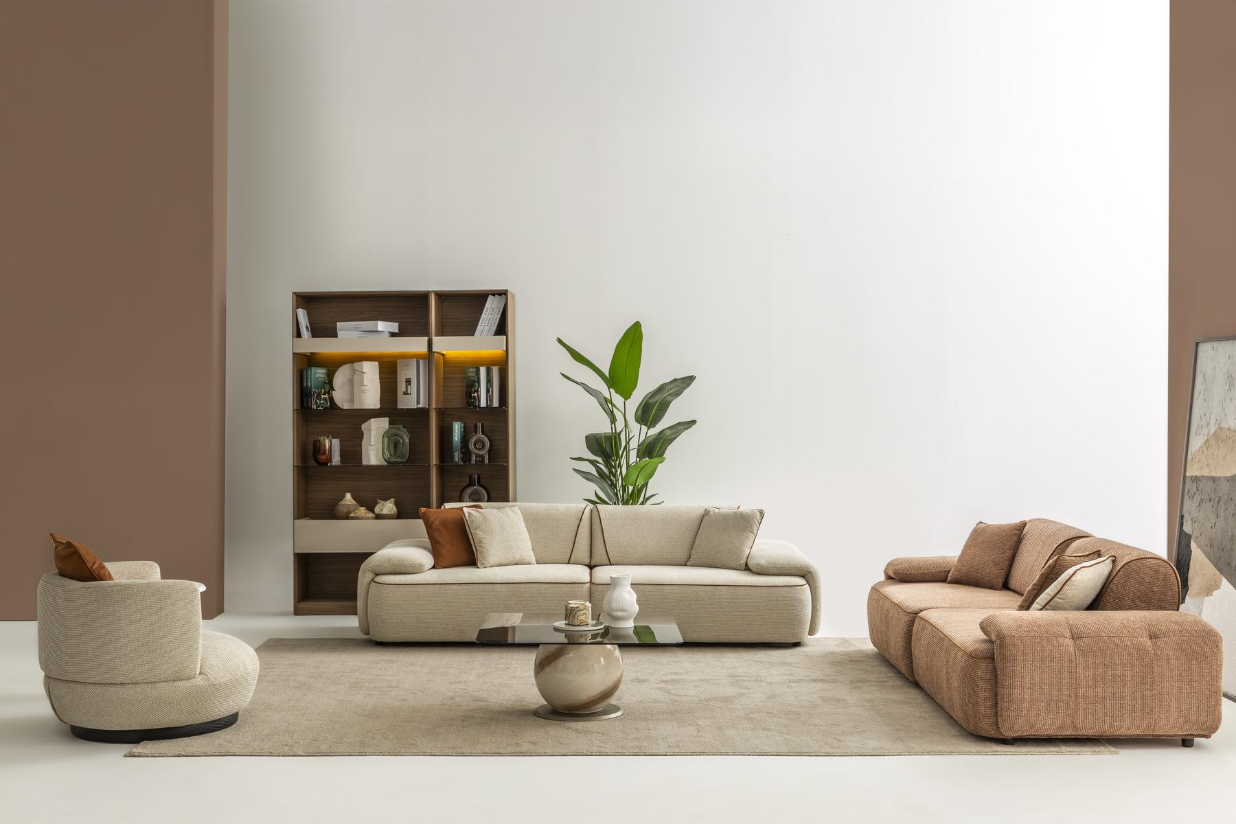 The compact and well-proportioned silhouette of both the seats and the small sofa, opens up to a new way of using the dining space.