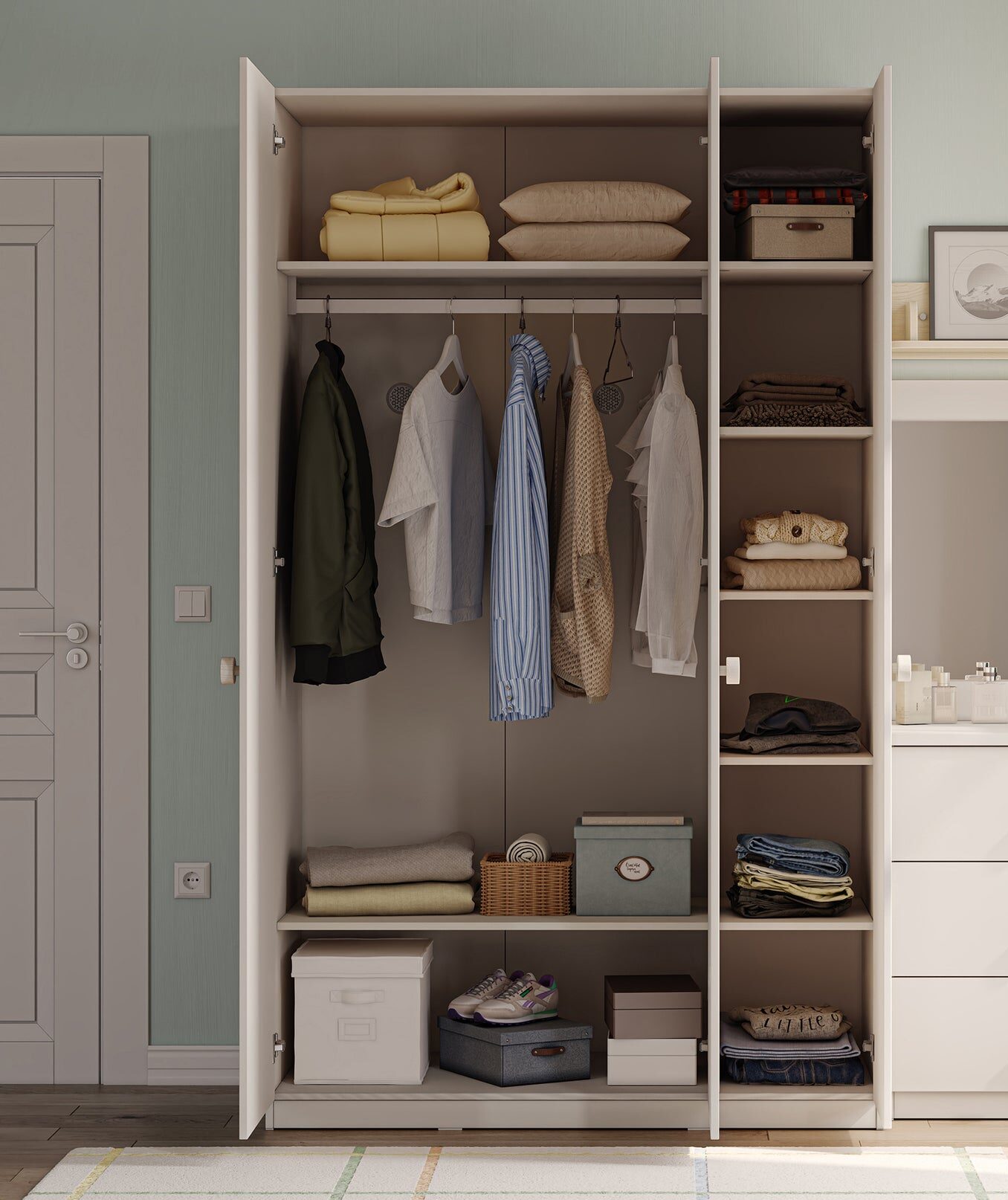 Featuring a modern design, the Varia Cream 3-Door Wardrobe brings order and simplicity to your room. Thanks to its spacious interior, you can easily store all your clothes, shoes, and accessories.