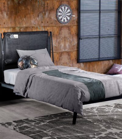 Dark Metal Line Bed with Flat Headboard 100x200cm